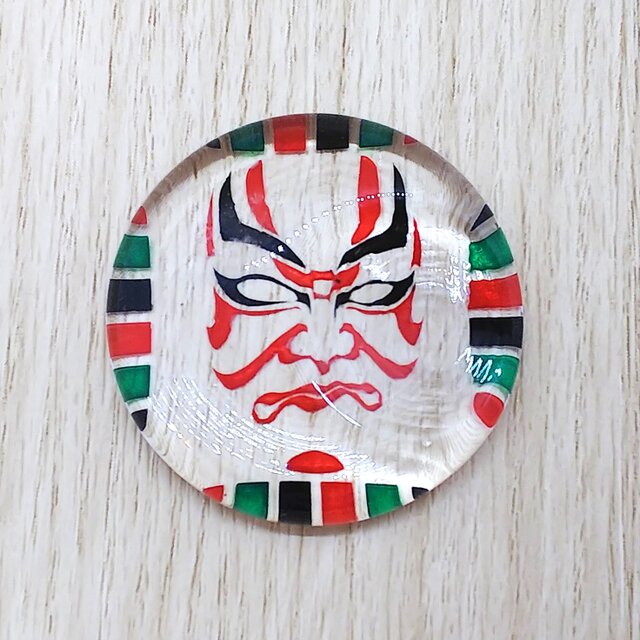 箸置き用のガラスの裏面に歌舞伎の隈取を彫り込みました。