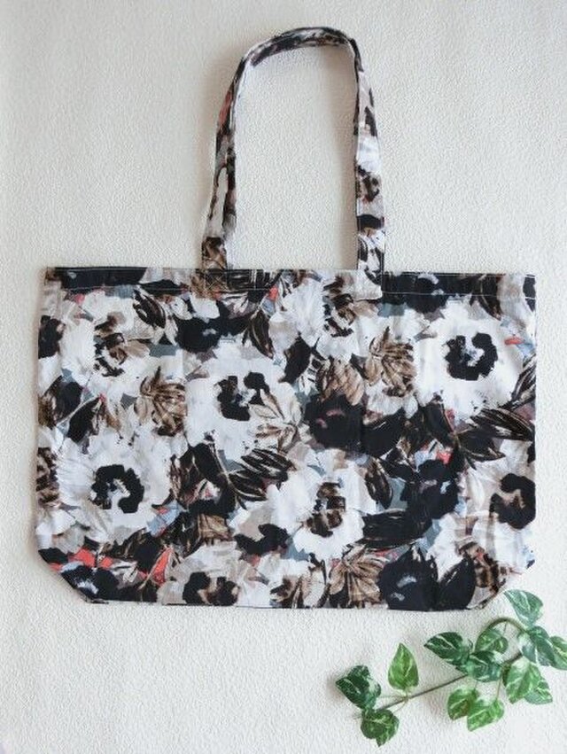 エコバッグ トートバッグ 大きな花柄 モノトーン調