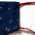 【布マスク】大人用 耳が痛くない 大きめ 息がしやすい 北欧柄 植物柄 紺×紺 -