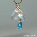 2wayでお使い頂けるように、宝石質ホワイトトパーズAAAのドロップブリオレットカット、宝石質スカイブルートパーズAAAのペアシェイプブリオレットカット、一番下に宝石質スイスブルートパーズAAAのドロップブリオレットカットを、チェーンを使用して下げました。