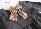 うしろにリバティの大きなリボンがついたガーリーなワンピースです。