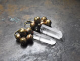 水晶とたわわな鈴、インディアンアゲート、ガーネットを繋いピアスです。