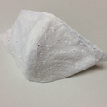 表側には木綿素材(お花のレース)、肌にあたる内側部分にはシルク素材を用いた立体マスクです。間に木綿を挟んでいます。