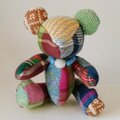 こぎん刺しのテディベアS マドラスチェックの総刺しこぎんクマ 夏の終わりに