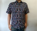 アムンゼン生地に様々な能面が描かれた粋なシャツ