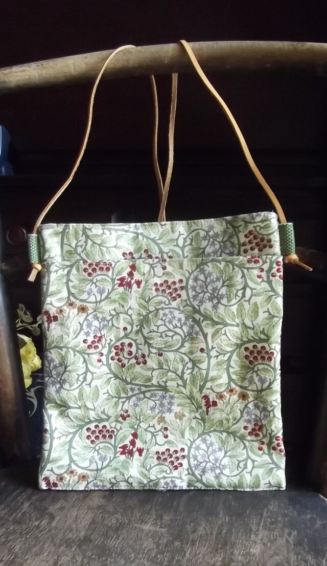 ボタニカルなつる草柄のオックス生地のミニショルダーバッグです。