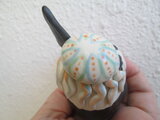 頭にかぶっているのは【クラゲ】の帽子なのでクラゲのプルっと感が出るように透明釉という釉薬を使って光沢を出しています(*^-^*)