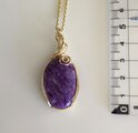 世界三大ヒーリングストーンの1つ「チャロアイト」を14金ゴールドフィルドスクエアワイヤーでラッピングしペンダントトップに仕立てました。