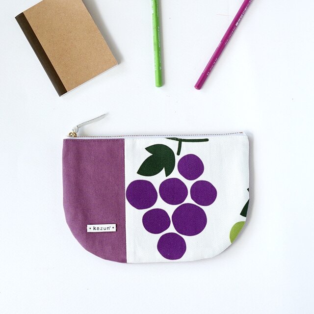 こちらの生地は、デザイナーsatomix_cafeさんデザインのぶどう柄を業者にプリントオーダーした、完全オリジナルです。