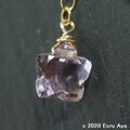 此方に添えたのは、丸カンにチェーンを下げて、宝石質ピンクアメジストAAAの小さなスターカットを下げました。