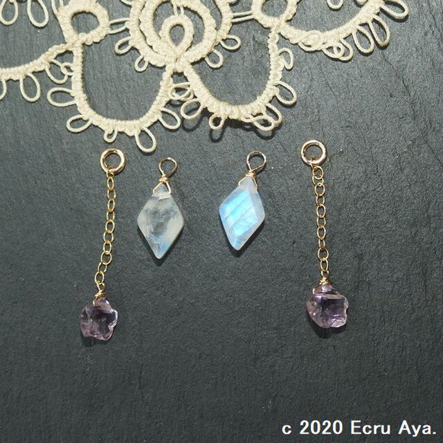 今回は美しいムーンストーンを使用して、ピアスチャームをお作り致しました。