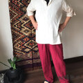 縦横無尽のオリジナルデザインでは定番の、片袖と半身に互い違いにピンタックをいれて、メンズタイプでありながら、周りの人と一味違うブラウスに仕上がりました。