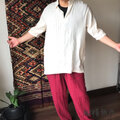 気持ちの良いガーゼのようなコットン生地なので一枚でも、中にTシャツやタートルをあわせても長いシーズン活用できてついつい着てしまいますよ。