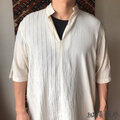 『片袖ピンタックと半身ピンタックがかっこいいメンズのコットンブラウス』