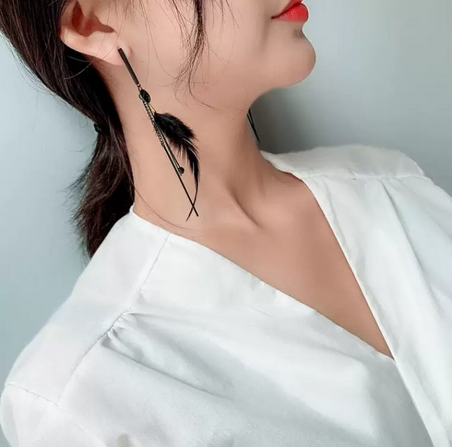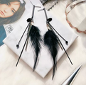 とてもシックで上品なデザインのブラックフェザーを使用したピアスです。