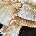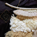 ホワイトからベージュの優しいグラデーションにこだわり、ぽこぽこと鱗雲のような羊毛や、麻糸、切りっぱなしのパイル地、チュール、ナチュラルなままのすすきの穂等、様々な素材を使用し、細部にまでこだわったかわいく優しい雰囲気の世界で1つの一点ものです。