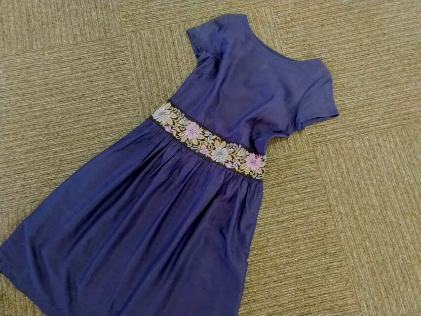 ★一点物ワンピース★委託品★ウエストに花の刺繍★インド人テーラーから★