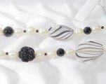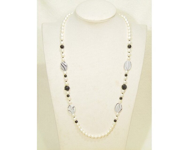 本真珠(淡水)とブラックスピネル、オニキスを使った、71cmの長めのネックレスです。