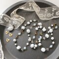 キュッとつまんだようなデコボコが楽しいミルクガラスビーズと、少し楕円の丸いビーズは、