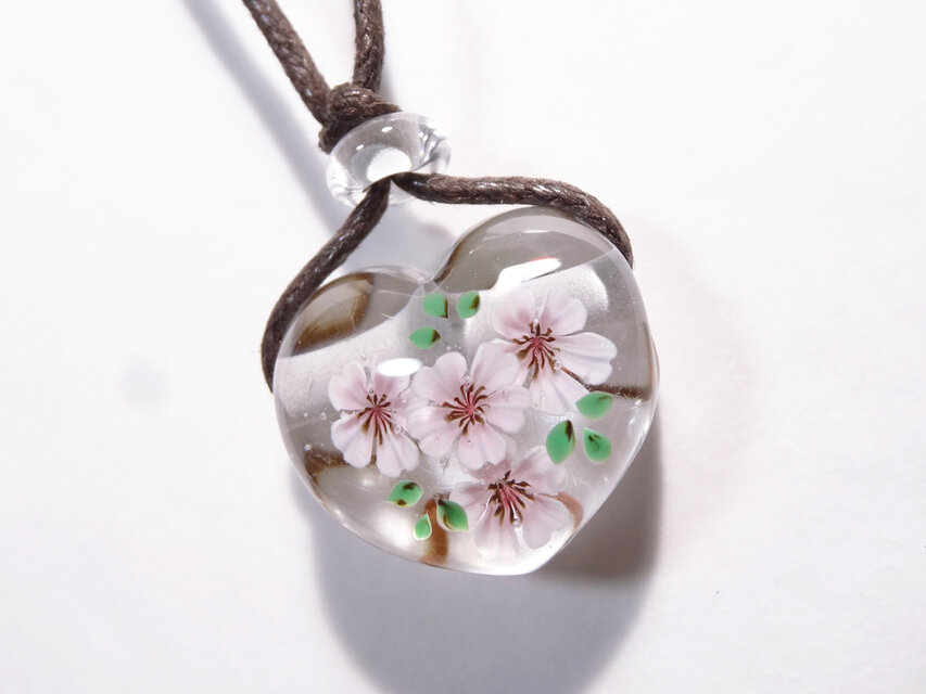 バーナーワークの技法で制作した、手作りのガラスのペンダントです。
