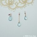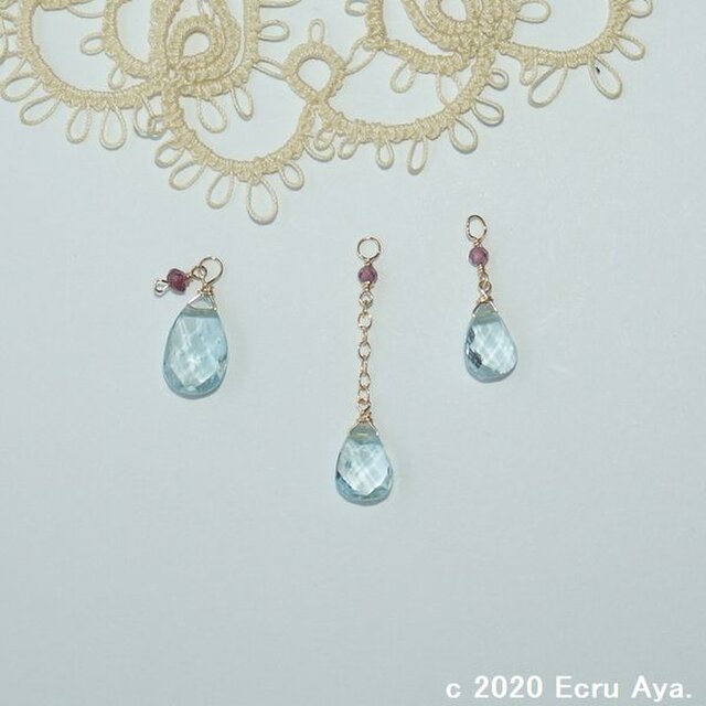 素材:宝石質スカイブルートパーズAAA ペアシェイプブリオレットカット、素晴らしい輝き宝石質ロードライトガーネットカットAAA 極小ラウンド、その他全て14kgf