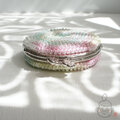 クリアパールのビーズに、パステルカラー段染めの色がきれいに透けて見えます。