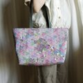 一辺が1.4㎝の六角形をひとつひとつ縫い合わせた総柄のバッグです。
