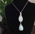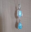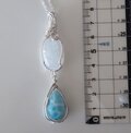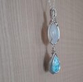 世界三大ヒーリングストーンの1つ「ラリマー」とレインボームーンストーンを繋いで揺れるタイプのペンダントトップに仕立てました。