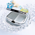あけると蓋の裏に鏡がついており、中の仕切りは2つです