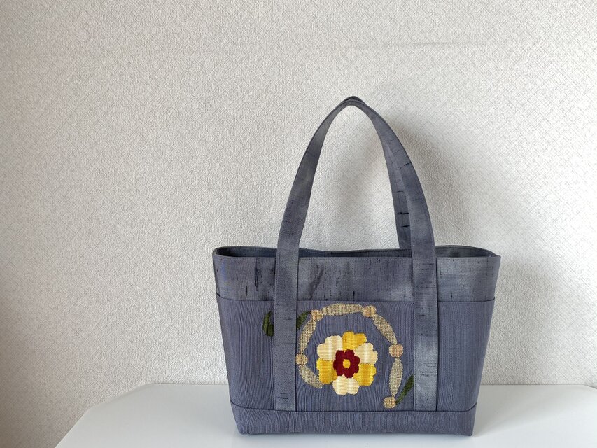 帯バッグ〜博多帯〜この度は、さっそくにバッグをお送りくださり、どうもありがとうございました☺️ 梱包も丁寧で、ティッシュケースまで付けていただき、感激です。 愛香さんのバッグはどれも素敵で、時折サイトをのぞいていました。今回ご縁をいただき、購入出来て、とても嬉しく思っています。 大切に使わせていただきます。