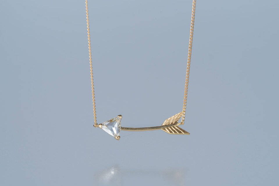 三角形のローズカットダイヤを矢に見立てたネックレスです。