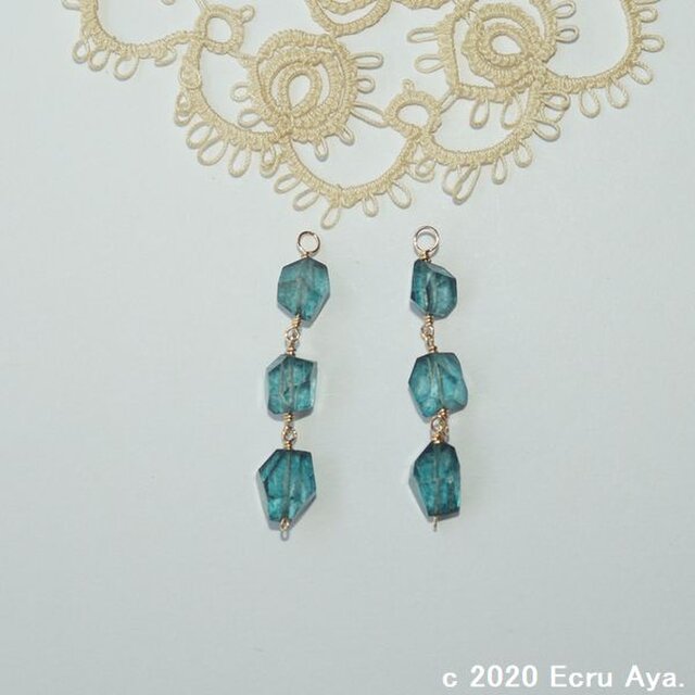 美しいロンドンブルーカラーとパーズのタンブルを、片耳に3個さげました。