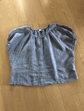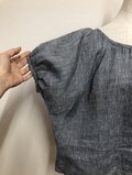 襟ぐりと袖口にギャザーが入っていて、可愛らしいデザインです。