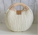 天然籐と紙ロープで編み上げられたシェル型ハンドバッグです。