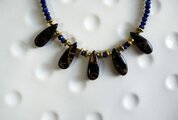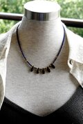 ネックレスのベースは直径3mmのボタンカット型ラピスラズリです。小さな粒ですが、とても美しいラピスです。細いネックレスですが、素晴らしい瑠璃色をお楽しみいただけます。