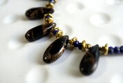 【素材】カッパーオブシディアン・ラピスラズリ・ブラスビーズ・ゴールドフィルド留め金・ナイロンコートワイヤー