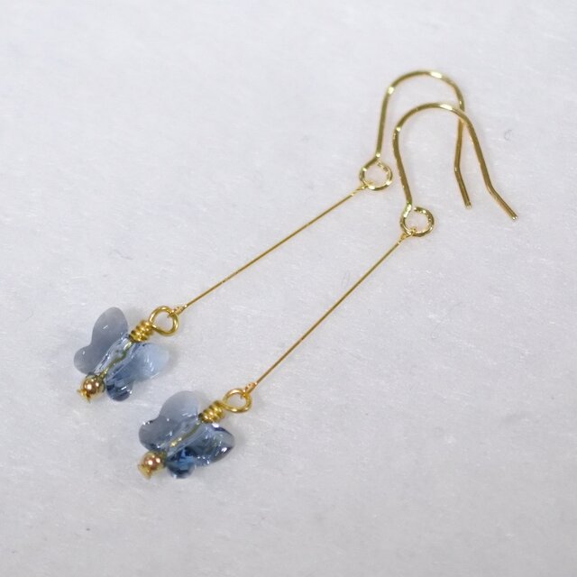 ゴールドチタンピアス・スワロフスキーの小さな青い蝶