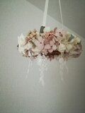 プリザーブドフラワーのアジサイとフレンチマリアンヌの花冠の様な吊るすタイプのリースです。