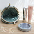 口金 : 柄入りアンティークゴールド、8.5cm、丸型、片カン