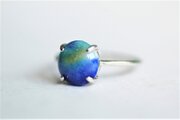 青系の釉薬を何種類かとゴールド系の釉薬で地球の様なイメージを表現してみました。