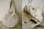 ベルギーリネンにイギリスのヴィンテージカットワークレースを組み合わせた丸いトートバッグ
