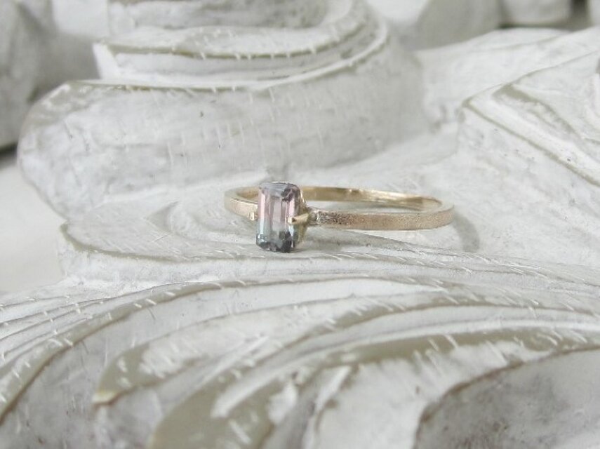 透明感あふれるピンク×ブルーの小さな四角いバイカラートルマリン。