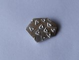 磁器のブローチです。金属のように見えますが手にとるととても軽いです。