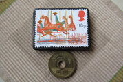 イギリス 童話(絵本)切手ブローチ 6686クリスマス切手ひとつでもお国柄を感じます。アクセサリーに変容した文化を楽しみたいと思います。