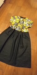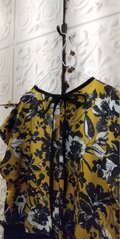 シックなマスタードカラーのフラワー柄にブラックリネンを合わせると、とても大人っぽい、素敵なワンピースになりました。