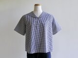 播州織コットン*サッカー生地のセーラーカラーブラウス(濃紺×白ギンガムチェック)送料無料