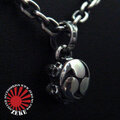 使用する状況を選ばないサイズにキッチリと三つ巴の紋様を彫り込み、台座部分には髑髏が小粒に配されています。
