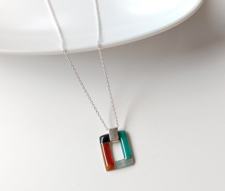 色々なバリエーションの素敵な作品ばかりで どれも欲しくなってしまいます。 この度は、赤と黒が印象的なこちらのネックレスを選びました。 モダンな感じがとても素敵です☆ ありがとうございました!