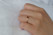 ペアシェイプのルビーを横向きに留めています。