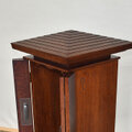 本体に楢無垢材、扉に楓玉杢を使い、拭き漆で仕上げた厨子です。塗りたての撮影で濃い色ですが、数カ月で漆が透け、綺麗な飴色に変化して綺麗な杢目が浮かび上がります。